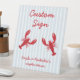 Add the perfect personalised touch to your crawfish boil engagement party or couples shower with this versatile and editable Southern-style party sign! Featuring a playful hand-drawn crawfish illustration in doodle style, this customisable sign includes bold red handwritten-style text on a fresh white and light blue striped background.