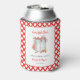 Cute Crawfish Boil personalised can cooler featuring watercolor crawfish boiling over in a pot perfect for engagement party, couples shower, or summer seafood dinner party.