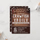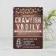This rustic brown design features a rustic wood background with string lights and crawfish graphics. This invitation is great for graduations, but the text can also be customised for birthdays, weddings, family reunions, and any other party you may have a crawfish, crayfish, crab, or lobster boil at. Enjoy your crawfish and seafood boil!