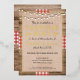 This rustic style design features a wood background with red and white ribbon. On top of that is a burlap texture and red and black serif and handwritten script font which, is all customisable to your event, whether it is a crawfish boil, lobster, seafood, or fish boil. Celebrate your graduation, birthday, engagement, or any event in style with this invitation!