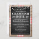This rustic style design features a wood background with red and white ribbon. On top of that is a chalkboard texture with white serif and handwritten script font which is all customisable to your event, whether it is a crawfish boil, lobster, seafood, or fish boil. Celebrate your engagement, birthday, graduation, or any event in style with this invitation!