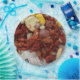 Paper plates with image of crawfish, corn and potatoes. Perfect for a crawfish boil.