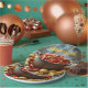 Paper party plates with image of crawfish cooking with potatoes and corn for a summer crawfish boil.