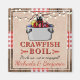 This rustic style design features a wood background with red and white picnic table cloth style ribbon. On top of that is a burlap texture with a cute cartoon crawfish. The red and black serif and handwritten script font is all customisable to your event, whether it is a crawfish boil, lobster, seafood, or fish boil. Celebrate your engagement, birthday, graduation, or any event in style! These make great keepsake party favours!