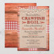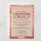 This rustic style design features a wood background with red and white ribbon. On top of that is a burlap texture and red and black serif and handwritten script font which, is all customisable to your event, whether it is a crawfish boil, lobster, seafood, or fish boil. Celebrate your graduation, birthday, engagement, or any event in style with this invitation!