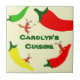 Spice up your kitchen with this Crawfish Hot Pepper Personalised tile. The tile features red, green and yellow chilli peppers with a girl crawfish holding a wooden spoon and hot sauce while two boy crawdads help with the peppers. Personalise the tile using the template. All text is customisable. A great gift for that Cajun chef in your life!