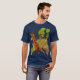 I give wanted to give this a 4 instead of a 5 because these Basic DARK T0shirts run unexpectedly SLIM or Narrow. Which is great if you do not have a potbelly, but I have a paunch. It isn't the shirt's fault that I've got a beer belly. The design and shirt itself is a quality cotton shirt. The color is more of a deep purple, but still a very pretty color. The Basic DARK T-shirts run a bit SLIMMER than the Basic Ts. The neck is a fraction narrower (or seems to be narrower) also. I'm a paunchy middle-aged woman and my neck is 12 inches (31cm) thick and the neckline fell about the same as in the photo of the man, and I had the desire to tug it a bit. So if you're a thick necked man or like loose shirts, be aware these are slimmer shirts. Once I get rid of my lockdown paunch it'll look great. The shirt washed well in cold water with no apparent bleeding. We don't have a dryer, so it hung dry. Did not shrink. Love the colors and the design. The design looks smaller on my shirt than it does on the model on-line. But still, it looks good on the shirt. The printing looks as it does on the model, just the size seems fractionally smaller. Washed garment in cold water, hung dry and design appeared unaffected.