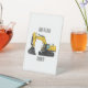 Crawler excavator cartoon illustration pedestal sign