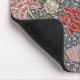 A mouse pad with the floral textile by William Morris (1834-1896), Cray (c. 1883). A floral pattern of pink and red flowers on a dark grey background.
