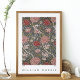A fine art modern poster with the pattern Cray (1884), by the British textile designer William Morris (1834-1896). A floral pattern of red and pink flowers against a sophisticated dark grey background.