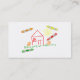 Simple childlike crayon style line drawing of a house, garden with flowers and happy sun. Image available on various gifts and products. Customise and choose your own background colour or add text if you need to. Custom business cards.