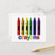 A graphic illustration of crayons with refrigerator magnet text that reads “crayons” by artist/designer Charmaine Paulson on a variety of products.