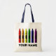 A graphic illustration of crayons by artist/designer Charmaine Paulson on a custom tote bag.