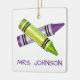 Ornament design features an original marker illustration of a pair of crayons. Simply personalise with the name of your favourite teacher.