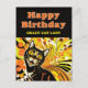 Colourful retro abstract portrait of a cat used to celebrate the birthday of a crazy cat lady.