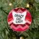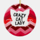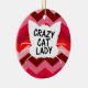Funny Christmas Ornaments. Featuring the Crazy Cat Lady! Red Chevron Waves.