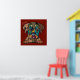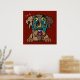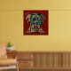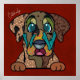 Unique crazy Catahoula dog face with bold, colourful abstract patterns on a red background. Popular with dog lovers and pet lovers and rescue dog lovers.