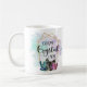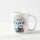 Enjoy this beautiful, "Crazy Crystal Lady", handwritten black typography with two gold, geometric frames, over purple, green watercolor background, and beautiful crystal quartz stones at bottom.