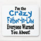 Funny item says I'm the Crazy Father-in-Law Everyone Warned You About! Makes a Great Father's Day Gift!
