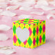 Crazy Kids Colours (CKC)-Argyle-PARTY FAVOR BOX, square heart box style-This design comes from a new collection of Crazy Kids Colours art work. Strong and bright crazy colours have created layer after layer of crazy fun perfect for children and adults alike. This particular design is an allover background argyle pattern. The colours in the collection include: purples, blues; pinks, yellows and neon green. It's a bold burst of colours kids will love. Mix and match coordinating Zazzle gifts are available in the Crazy Kids Colours Collection. Choose any style/quantity of Zazzle party favour boxes.