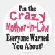 Funny item says I'm the Crazy Mother-in-Law Everyone Warned You About! Makes a great gift!