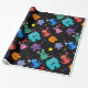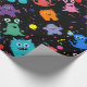 Crazy Party Monster Pattern Birthday Black Wrapping Paper