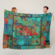This interesting abstract features rich shades of red, orange, teal, turquoise, brown, with varying depths of colour and light. It almost looks like someone splatter-painted a stained glass window, and the result is a rich patchwork effect of deep turquoise, bright red, and other colours to brighten up your cold fall and winter days as you snuggle into this fleece blanket.