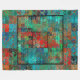 Crazy Turquoise and Red Squares and Squiggles Fleece Blanket