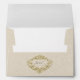 Introducing our exquisite Cream and Gold Metallic Crest Wedding Envelope, the epitome of sophistication and timeless elegance. Designed to elevate your wedding stationery to new heights, this envelope is a stunning addition to your special day. Crafted from premium quality cream-coloured paper, this envelope exudes luxury from the moment it's held in your hands. The rich gold metallic wedding crest adorning the back of the envelope instantly captures attention, adding a touch of regal charm to your invitations. This crest is intricately detailed, and contains your own personalised monograms of the Bride and Groom. Whether you're planning a lavish ballroom affair or an intimate garden celebration, this envelope sets the tone for a celebration of love and sophistication. It's the perfect vessel to encase your meticulously crafted invitations, ensuring that each guest receives a glimpse of the elegance and romance that awaits on your wedding day.