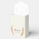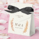 This elegant and simple autumn wedding favour box has easy to personalise yet timelessly classic typography, a modern monogram and painted orange and red leave sprigs to give a sophisticated air to any fall affair.