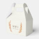 This elegant and simple autumn wedding favour box has easy to personalise yet timelessly classic typography, a modern monogram and painted orange and red leave sprigs to give a sophisticated air to any fall affair.