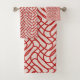 Cream And Red Abstract Line Pattern Bath Towel Set