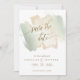 Elegant Wedding Save the Date card with beautiful sage green brush strokes in a harmonious blend of cream beige, peach, and sage green hues with "Save the Date" phrase in graceful modern hand written calligraphy. Attractive back with brush strokes wash. Modern, elegant minimalist style. Note: typography is not in real foil, but rather print in a golden hue. Part of our "Sage Green Brush Strokes Wedding" collection.