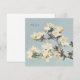 Vintage Japanese illustration of Azalea flowers. Personalised monogram. White and cream flowers on a blue background.