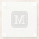 Glass coaster with beige polka dot pattern with custom monogram.