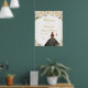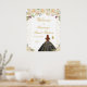 This elegant and glamourous sweet sixteen welcome sign features a beautiful princess with brown red hair and fair skin in a cream ball gown. The text combines handwritten script and modern sans serif fonts for a classy and sophisticated look. The floral arrangements, butterflies and gold confetti create the perfect blend of rustic and chic.