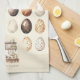 The design features a charming vintage kitchen scene accented with pastel Easter eggs, creating a cozy and cheerful Easter atmosphere. Personalized with a name or family name, this towel is perfect for Easter brunches, holiday cooking, spring gatherings, and seasonal celebrations.