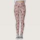 Cream Burgundy Red Hearts Flowers Leggings