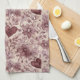 Cream Burgundy Red Hearts Flowers Tea Towel