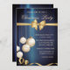 An elegant holiday party invitation featuring a cream Christmas balls and gold bow on dark blue background. These beautiful Christmas invitations are perfect for Christmas dinner party invitations, holiday gift exchange invitations, Christmas fundraisers, holiday ball invitations, and other events held during the month of December. Just use the template fields to add your own event information.