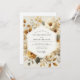 Evoking a sense of gentle romance, this design features a delicate arrangement of cream-hued blossoms and autumnal foliage. The soft color palette and organic textures create a warm and inviting atmosphere, perfect for a rustic celebration. Hints of soft gold and muted green add depth to the floral composition.