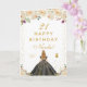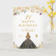This elegant and glamorous birthday card can be personalized with a name or title such as daughter, granddaughter, niece, friend etc. The design features a beautiful princess with blonde hair and fair skin in a black ball gown. The text combines handwritten script and modern sans serif fonts for a classy and sophisticated look. The floral arrangements, butterflies and gold confetti create the perfect blend of rustic and chic.