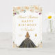 This elegant and glamorous sweet sixteen birthday card can be personalized with a name or title such as daughter, granddaughter, niece, friend etc. The design features a beautiful princess with blonde hair and fair skin in a black ball gown. The text combines handwritten script and modern sans serif fonts for a classy and sophisticated look. The floral arrangements, butterflies and gold confetti create the perfect blend of rustic and chic.