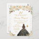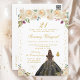 This elegant and glamourous birthday party invitation features a beautiful princess with brunette hair and fair skin in a black ball gown. The text combines handwritten script and modern sans serif fonts for a classy and sophisticated look. The floral arrangements, butterflies and gold confetti create the perfect blend of rustic and chic.