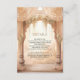 Amaze your guests with this elegant Indian wedding details enclosure card featuring beautiful arches decorated with curtains and cream flowers.