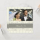 Elegant photo wedding vow renewal invitations in elegant beige and cream stripes and flowers pattern with fully customisable text to include your vow renewal ceremony details and space to add your own photo.