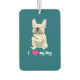 Cream French Bulldog, I Love my Dog Car Air Freshener