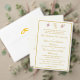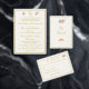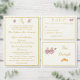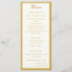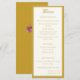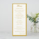 Design front features a pale-cream background to your customizable text. Heading is displayed in an elegant ochre font in top center. Following the traditional format for a wedding menu, all text is customizable and displayed in ochre. Entire design is framed by an ochre and pale-cream border.