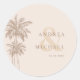 Cream Palm Trees & Ampersand Names Wedding Classic Round Sticker