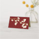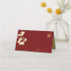 Oriental peach / plum blossoms, spring flowers in cream / ivory / white on a dark burgundy red / matte brass gold background with a simple rectangle double happiness symbol wedding folded place card / guest seating escort card. An elegant and romantic floral chinese themed wedding design which is whimsical, modern and classy.